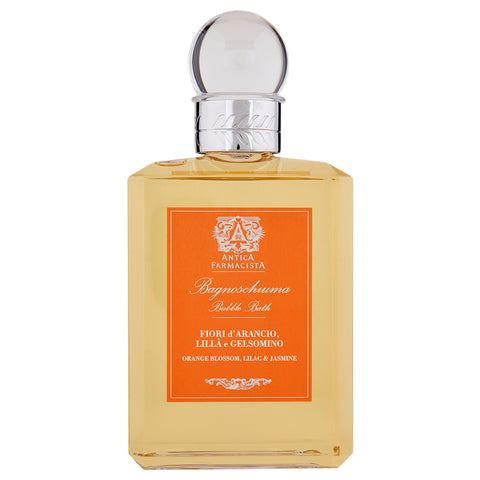 Antica Farmacista Orange Blossom, Lilac & Jasmine Bubble Bath is generously enriched with honey, aloe vera, green tea and jojoba oil for the ultimate calming bath experience. This rich formula produces an incredible lather and bubbles that last the duration of your bath. Soak in these fragrant suds with ingredients that will not only relax but nourish your skin, leaving it silky soft.