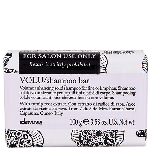 Davines Shampoo Bar Volu is a solid shampoo bar that gives body and volume to fine or limp hair. A solid texture that develops into a rich creamy foam during application to give softness, shine and silky texture.