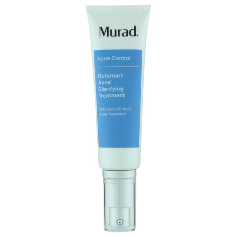 Say bye-bye to blackheads, excessive oiliness and acne blemishes with Murad’s Outsmart Acne Clarifying Treatment. Powered by Murad’s innovative Penta-Acid technology, this lightweight medicated gel combines five types of acne-clearing acids including salicylic, glycolic, and sebacic acids to help control oil, exfoliate and eliminate acne-causing bacteria without causing irritation and dryness. Notice reduced blackheads and whiteheads, smaller pores, and decreased acne flare-ups in as little as one week. Clinically tested. Formulated without alcohol or gluten. Cruelty-free.