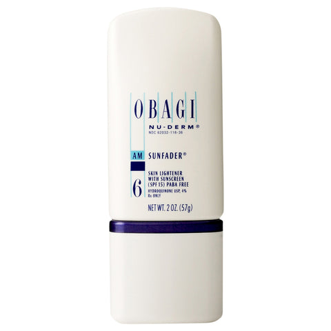 When using any skin lightening treatment, it's essential to use sunscreen to protect your results. Obagi Nu-Derm's Sunfader SPF 15 works like two products in one, combining sunscreen ingredients (7.5% octinoxate and 5.5% oxybenzone to be exact) with 4% hydroquinone for optimal results. When used as part of the Nu-Derm Anti-Aging System, a more even complexion is virtually guaranteed.