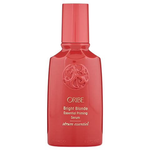 Oribe Bright Blonde Essential Priming Serum is specially formulated with violet and pearlized pigments. Our brightening serum tones and eliminates brassiness while replenishing moisture and protecting up to 450°F. Hair is left restored, touchably soft.