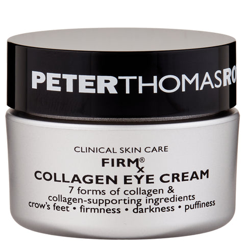 Peter Thomas Roth FirmX Collagen Eye Cream features 7 forms of collagen and collagen-supporting ingredients that help firm and smooth the look of the delicate eye area. Marine Collagen, Plant Collagen and Hydrolyzed Collagen help improve the look of fine lines, wrinkles, crow’s feet and firmness while Hydroxyproline, Peptides, Collagen Amino Acids and Fatty Acids help boost results. 2% Eye’Fective™ and Caffeine visibly help reduce the look of darkness and puffiness. 5% Hyaluronic Acid Complex and Squalane leave the delicate eye area feeling hydrated and supple.